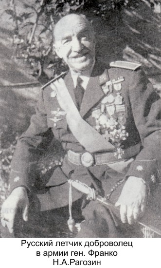 - Сын, Рагозин Александр Николаевич, последовав примеру отца, с лета 1936 г. воевал в рядах франкистской авиации, выстраивал «воздушный мост» между основной группировкой националистов и окружённым республиканцами монастырём Аудьяр. В конце 1936 г. в одном из вылетов был ранен. Во время Второй мировой войны сражался в составе испанских частей, действовавших на стороне Германии на Восточном фронте. После войны Рагозин младший продолжил авиационную службу и к 1955 г. получил чин лейтенанта.