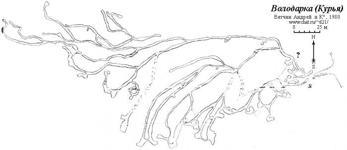 Активная разработка каменоломен Константиновского оврага велась в XIX в, особенно интенсивно с середины века, постепенно затухая к началу ХХ в. Отдельные каменоломни эпизодически разрабатывались вплоть до 1930-х гг. (устное сообщение местного жителя И.А. Бугрова (2002 г) [3], подростком, в начале 30-х гг. работавшего со своим отцом в одной из каменоломен). К концу 1960-х гг. все входы времен разработки исчезли: обвалились, были затянуты паводковыми наносами, закиданы помойкой. Среди групп энтузиастов первой здесь начала копать группа из Ждановского турклуба [4] Ей, по-видимому, принадлежит заслуга первого вскрытия пещеры Курья (Володарская-3) в 1976 году. Вскоре этот вход был перекрыт оползнем. 26.11.1978 группа в составе: Петр Николаев (Крот), Е. Симкин (Мики), А. Платонов, С. Опейкин (Бен) и А. Селезнев (Клякса) снова раскопали вход и проникли в привходовой колонный зал. Первоначально эта команда попытались прокопаться из него влево, а затем, 3.12.1978, разобрала тонкую ровную кладку в правой стене зала и вышла в центральный штрек, открыв основной объем пещеры. В первых числах января 1979 года были вскрыты два участка - 40 метров с левой стороны штрека к гроту Дюймовочка, и 220 метров - за правой стеной Центрального штрека. В ноябре-декабре 1981 года группой Крота была вскрыта пещера Тавровая. Пройдя в конце точильного рва шурф глубиной 4 метра и пробив известняковый козырек, участники попали в штрек, перекрытый с одной стороны обвалом, а с другой - полностью забутованный. Е. Симкин и Е. Снетков за один час разобрали забутовку и вышли в каменоломню Тавровая. Участники вскрытия: П. Николаев (Крот), Е. Симкин (Мики), Ю. Шаронов (Носорог), С. Кузнецов (Масляный), А. Селезнев (Клякса), Евг. Снетков. 7.12.1986 из грота Дядя Сэм была вскрыта система Лукоморье; Ник. Чеботаревым из спелеосекции МГУ, А. Новиковым (Шурик) и Хенком Малым для этого был пройден в забутовке ход около 20 метров.
