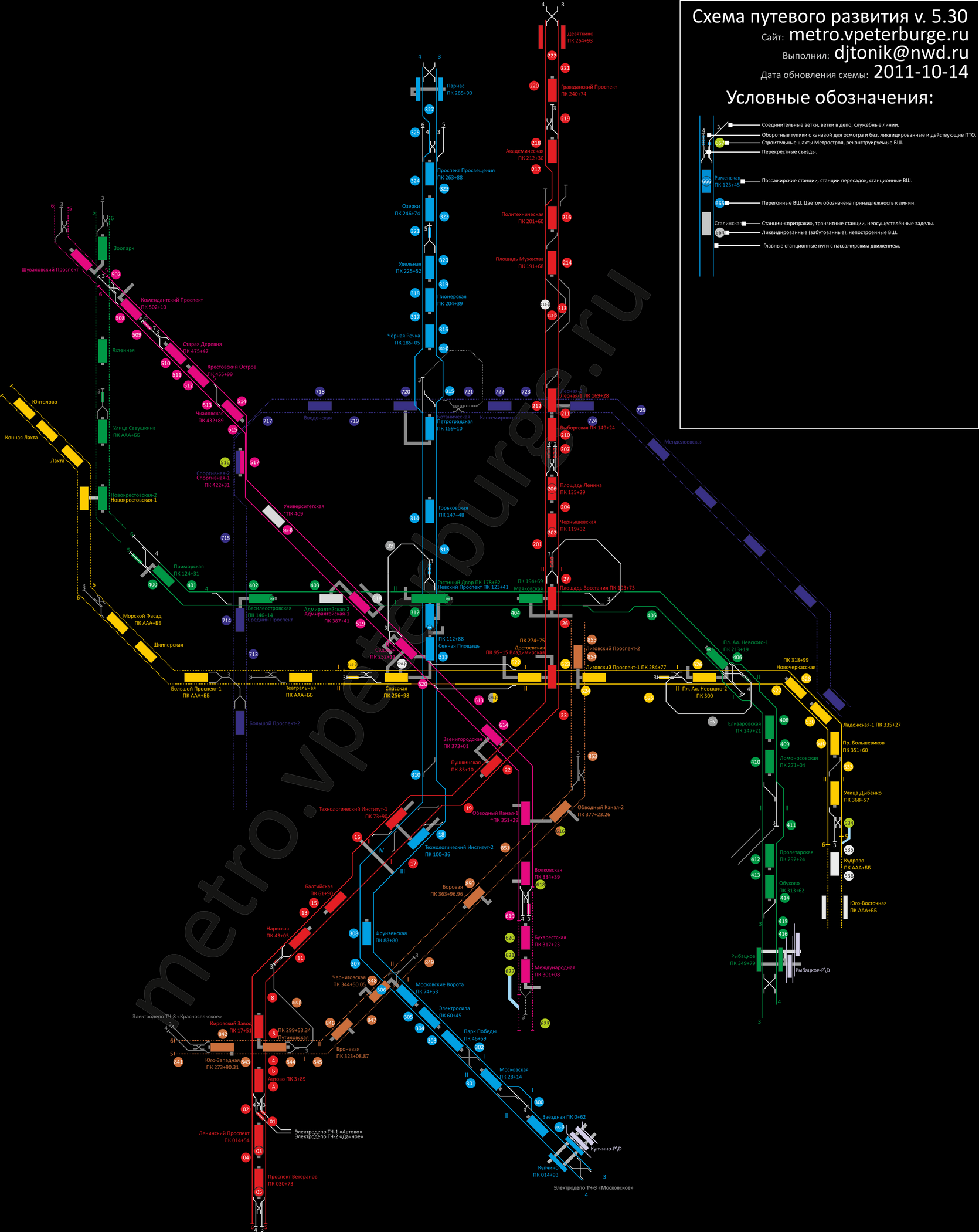 - ↑ Схема путевого развития Петербургского метрополитена. www.subwaytalks.ru. Дата обращения: 13 ноября 2011. Архивировано 2 июня 2012 года.