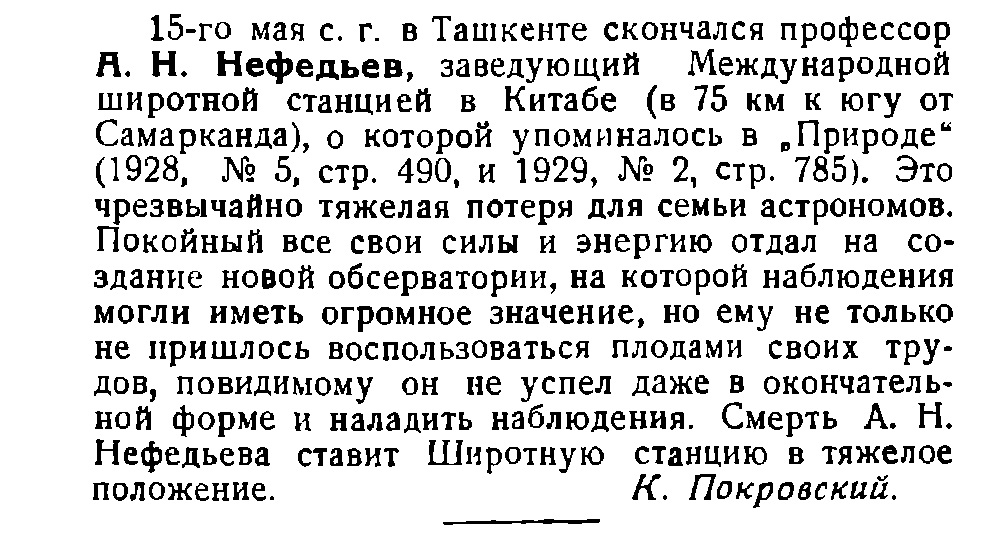 - ↑ Покровский К. Д. Новая широтная станция в Туркестане // Природа. 1928. № 5. С. 490–491.