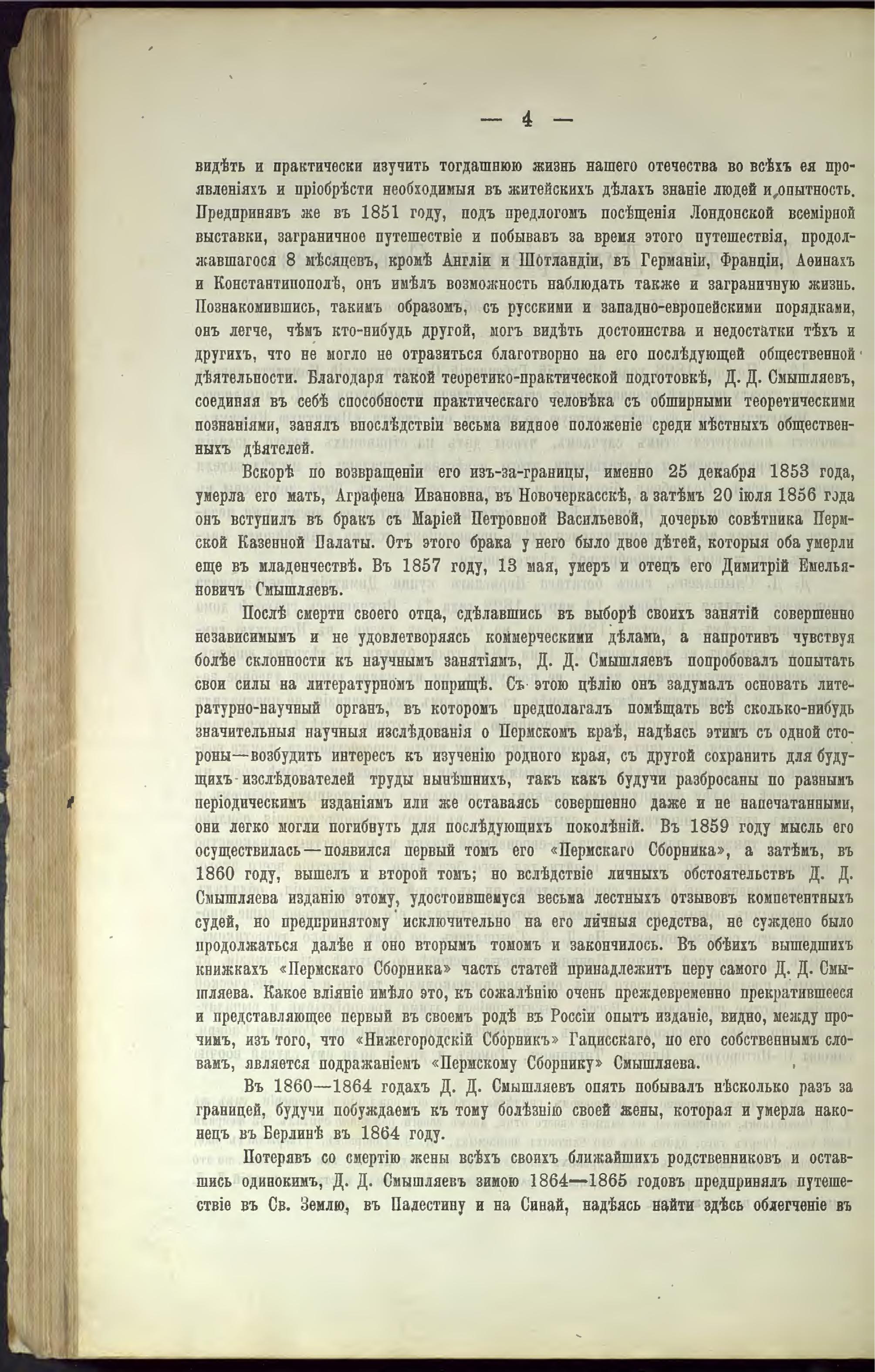 В 1858—1860 годах был издан «Пермский сборник» под редакцией Смышляева, посвящённый истории, этнографии и статистике Пермского края[4].
