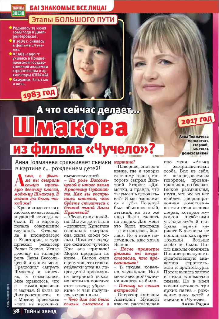 - ↑ 1 2 Как сложились судьбы детей-актеров из фильма «Чучело» | Журнал Домашний очаг. www.goodhouse.ru. Дата обращения: 3 апреля 2022. Архивировано 3 апреля 2022 года.